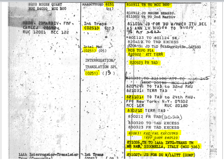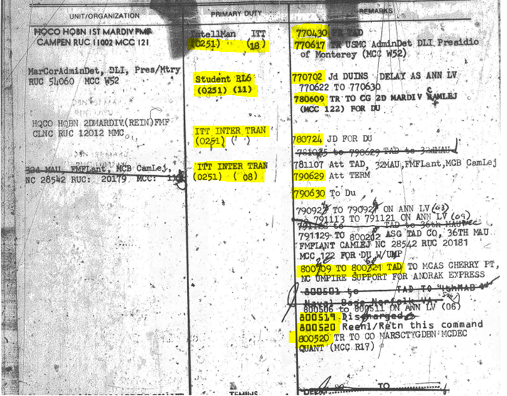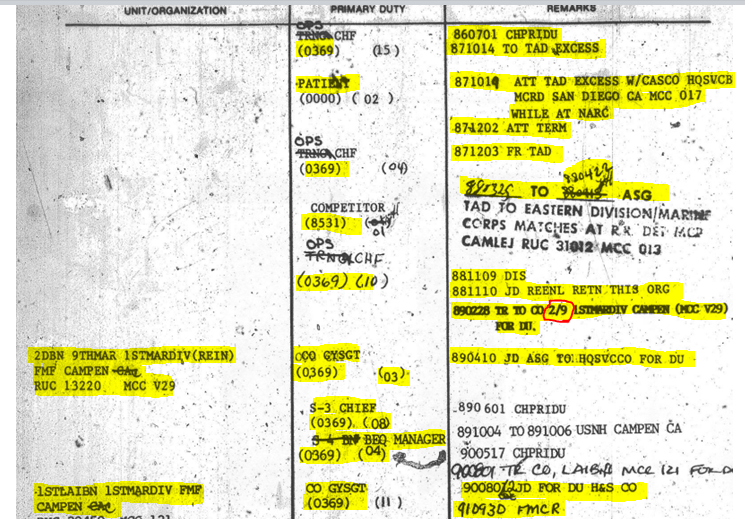 I requested a latmove to 0369, recieved it a took over as div ops chf, a MgySgts billet and held it from 1987=89. I was also the G-3 secondary classified material control officer, how did I do that without a clearance. additionally I recieved an sci/si ts clearance in 1989. when bobby harris committed suicide I was not in NOLA. you make some big claims for someone I never heard of. Oh, by the way, I volunteered for alcohol rehab at the bequest of Col Rufus Bowers. I successfully completed the course at NAS Miramar CA and returned to NOLA. This can all be verified through records. You are a class asshole and have left yourself open to criminal libel chrges