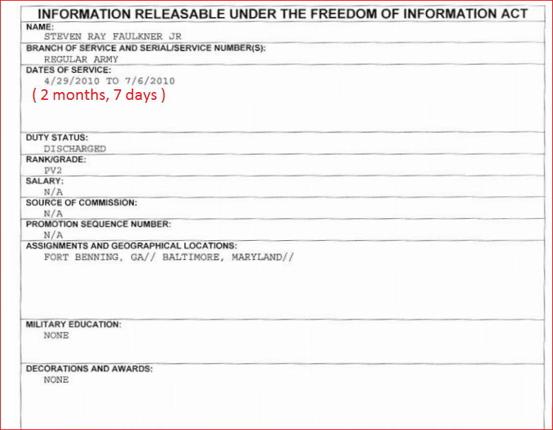 Steve Faulkner Jr, US Army Air Assault Infantryman / Sniper POSER Blog of Shame