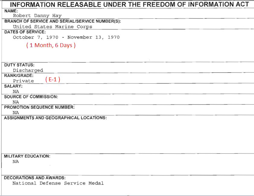 Robert Hay, US Marine combat wounded Vietnam Veteran with a SS & BSM POSER Blog of Shame