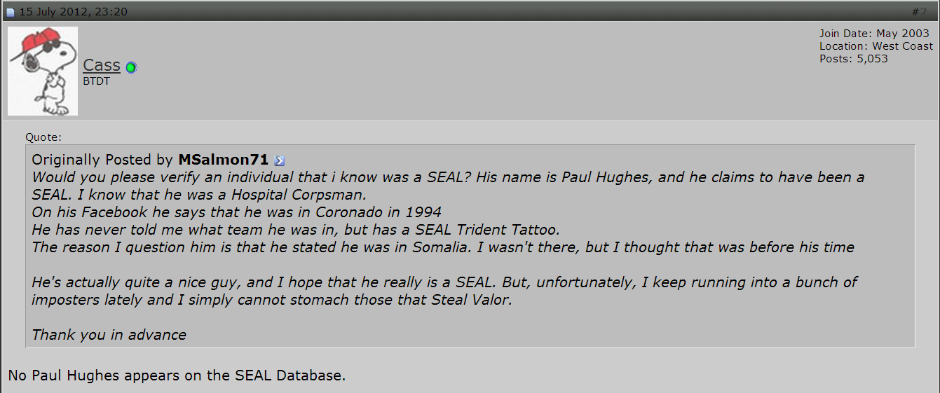 Many SEAL imposters when confronted with the information I have provided will resort to
