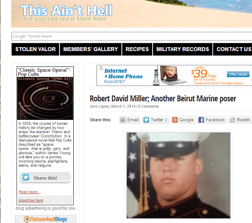 Robert Miller US Marine Combat Wounded Beirut POSER , Blog of Shame