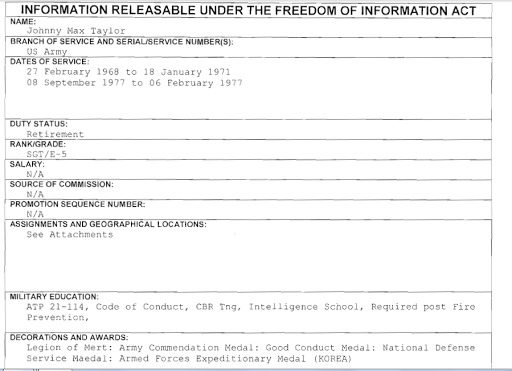 Johnny Max Taylor, aka J. Max Taylor , US Army Vietnam Veteran POSER , Blog of Shame
