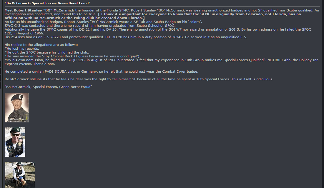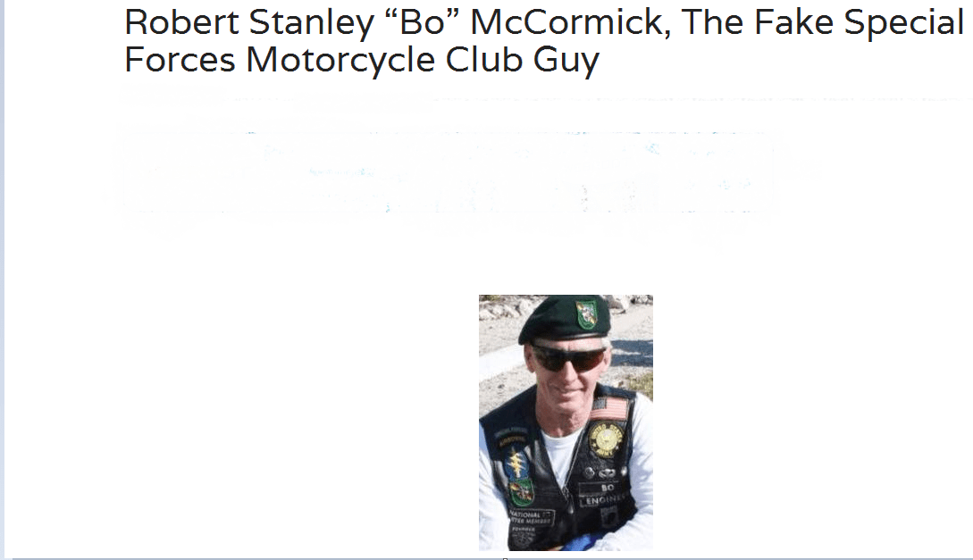 Stanley "BO" McCormick was wearing unauthorized badges and not SF qualified,