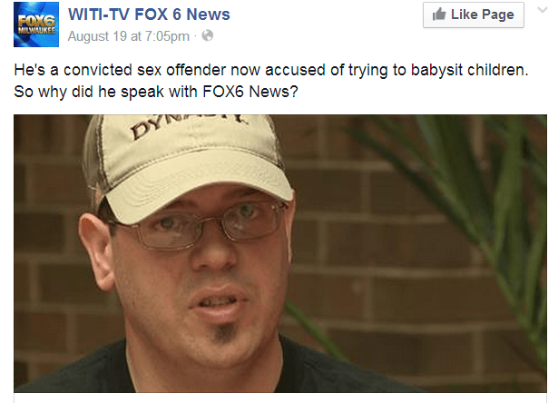| http://fox6now.com/2014/08/19/convicted-sex-offender-accused-of-trying-to-babysit-children-speaks-exclusively-with-fox6/ |